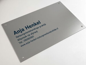 Aluminium bedrijfsborden zijn verkrijgbaar in verschillende finishes: geborsteld voor een moderne, matte uitstraling, gepolijst voor een glanzende finish, of geanodiseerd in diverse kleuren (zilver, zwart, goud, brons). Elke finish heeft zijn eigen karakter en beschermingsniveau. Geanodiseerde finishes bieden de beste kleurvastheid en corrosiebestendigheid, ideaal voor langdurig buitengebruik.