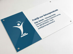 De ideale grootte hangt af van de afstand waarop het bord gelezen moet worden en de hoeveelheid informatie. Voor de meeste heilpraktijken is 30x20 cm een goede keuze, maar voor locaties met grote afstand tot de straat kan een groter formaat nodig zijn.