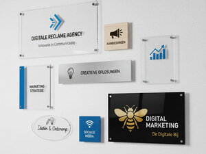 Naast de populaire dibond en forex opties, bieden we ook specialistische materialen voor specifieke toepassingen. Plexiglas (acrylaat) geeft een hoogwaardige, glazige uitstraling die perfect past bij luxe retail of professionele dienstverlening. Voor extreme weersomstandigheden of industriële toepassingen zijn er ook opties zoals Trespa of geanodiseerd aluminium.