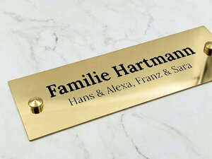 Een messing naambordje voor uw voordeur brengt onmiddellijk klassieke elegantie naar uw entree. Dit tijdloze materiaal combineert duurzaamheid met een warme, gouden uitstraling die uw huis een karakteristieke identiteit geeft. Bij Otypo creëert u uw eigen messing naambordje volledig naar wens, met precisie lasergravure en complete ontwerpvrijheid voor een resultaat dat perfect bij uw stijl past.