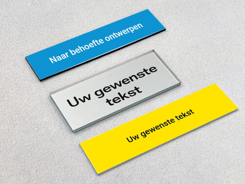 Standaard naamborden zijn meestal beperkt tot enkele basiskleuren zoals wit, zwart of zilver. Een gekleurde plaat daarentegen biedt toegang tot professionele kleursystemen zoals RAL en Pantone. Dit betekent dat u exact dezelfde kleuren kunt gebruiken als in uw logo, huisstijl of architectonische omgeving.