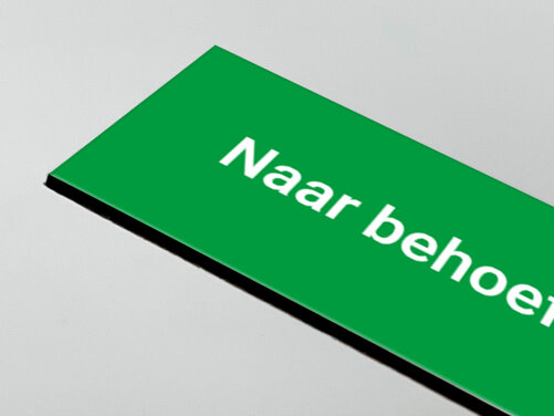 Het ontwerpproces begint met uw ideeën en onze technische expertise. Formaat en afmetingen kunnen volledig worden aangepast aan uw specifieke situatie. Of u nu een compact naambordje van 5x2 cm nodig heeft of een grote bewegwijzeringsplaat van 100x50 cm, onze productiefaciliteiten kunnen vrijwel elke gewenste maat realiseren.