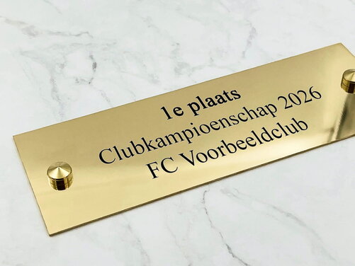 Een trofee tekstlabel is een klein plaatje van metaal of kunststof dat op een sportbeker, medaille of andere prijs wordt bevestigd. Het label bevat gegraveerde tekst zoals de naam van de winnaar, de datum van het evenement, of de naam van het toernooi. Deze graveerplaatjes maken van een standaard trofee een persoonlijk aandenken dat jaren lang gekoesterd wordt. In onze ervaring met duizenden sportverenigingen zien wij dat een goed ontworpen naamplaatje de waarde van een trofee aanzienlijk verhoogt.