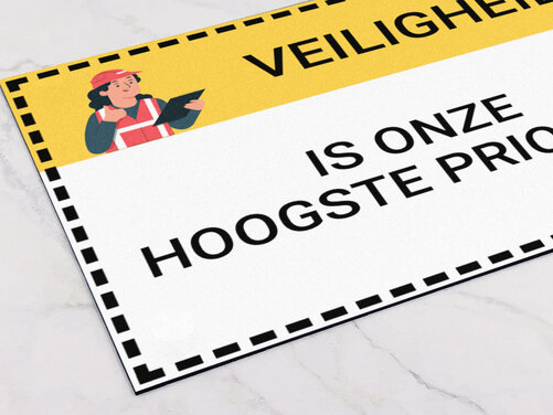 Ja, u kunt aangepaste veiligheidsborden laten maken met uw eigen tekst, logo of specifieke instructies. Dit is vooral nuttig voor bedrijfsspecifieke procedures of meertalige werkplekken. Zorg er wel voor dat de standaard pictogrammen volgens ISO 7010 blijven gebruikt voor universele herkenning, en voeg uw tekst of logo toe als aanvulling op de gestandaardiseerde symbolen.
